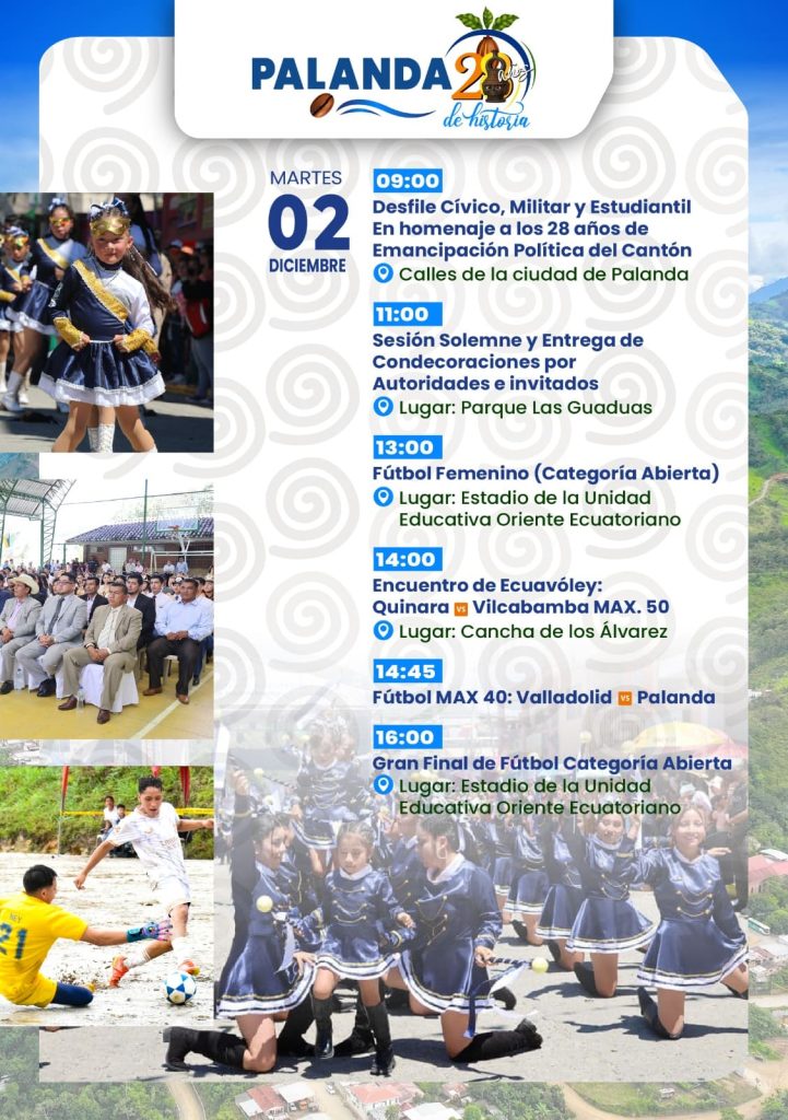 El cantón Palanda se viste de fiesta para celebrar con orgullo sus 28 años de cantonización. El Gobierno Autónomo Descentralizado (GAD) Municipal ha hecho público el Programa Oficial de Fiestas 2025, una agenda elaborada para destacar la riqueza cultural, la historia y el espíritu indomable de su gente.